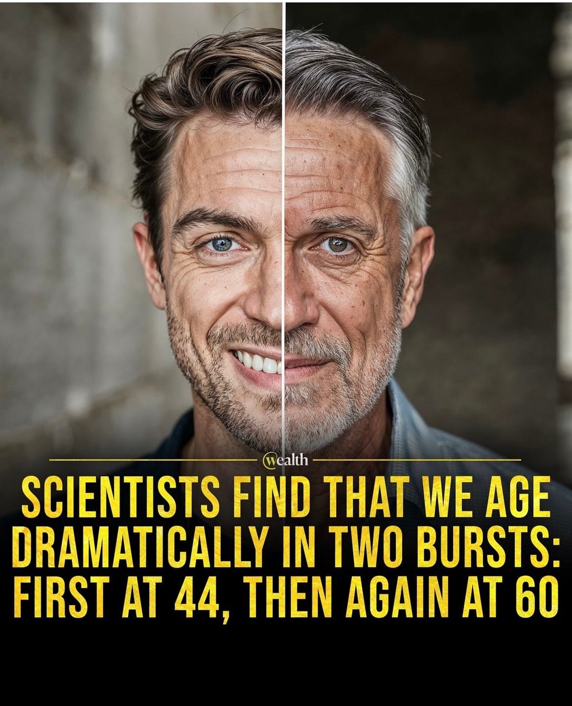 As much as I wanted the meme to be fake news—and believe I was not currently in one of these rapid aging periods— it turns out this is new research by scientists at Stanford Medicine. Published in the journal Nature Aging, scientists studied blood, nose, mouth swabs, and other biological samples from participants over several years. The scientists noticed that many molecules, including proteins, microorganisms that live in our bodies, and the cells that structure DNA, to name a few, did not increase or decrease at a steady rate, but instead had periods of distinct increase or decrease. The most noticeable changes happen around age 44 and 60.